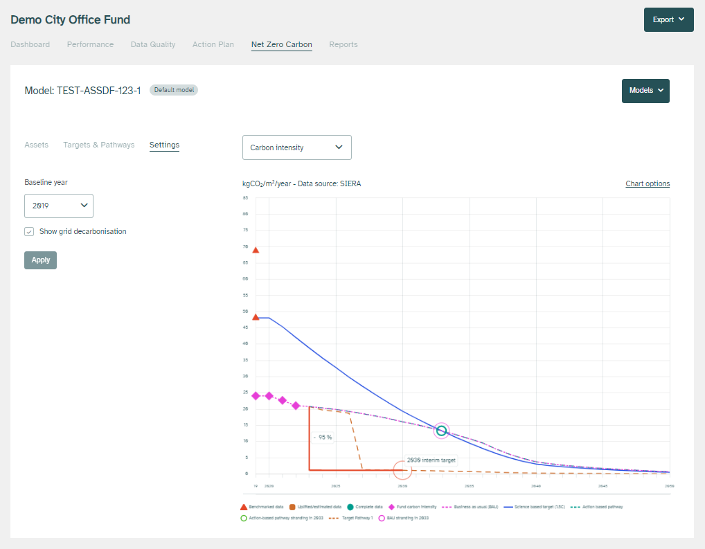 - Users can manually create models in the Net Zero Carbon Module for specific assets and/or funds – and define the model’s data and settings.