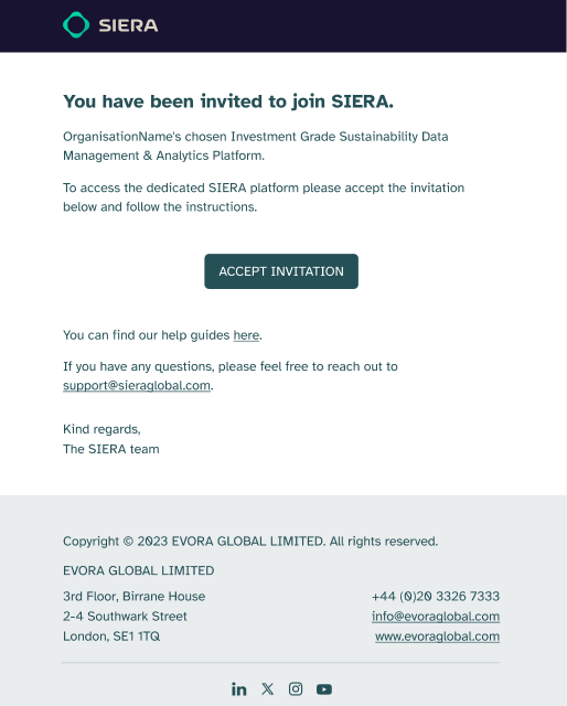 1. When you receive your Personalised Email Invitation in your Email Inbox, click on the Accept Invitation button. This will redirect you to your SIERA authentication screen.